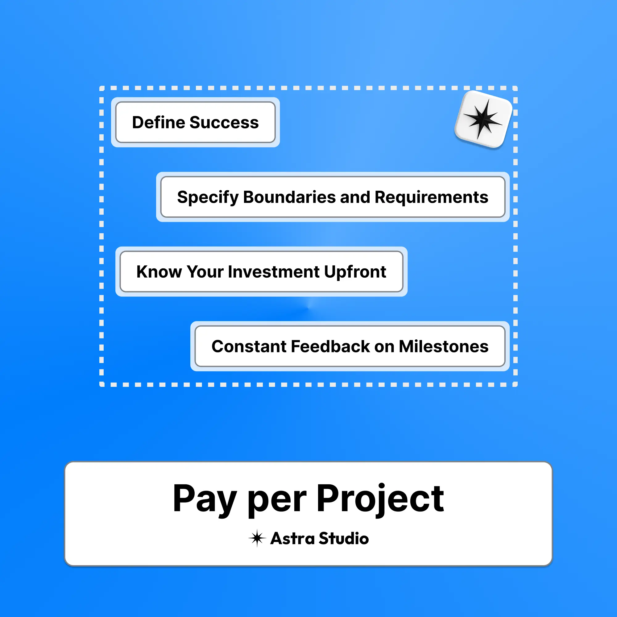 Set a scope and pay a defined value. If you have a very structured concept in mind that won't change, you can benefit from our Pay per Project model. Best for simple and quick projects.