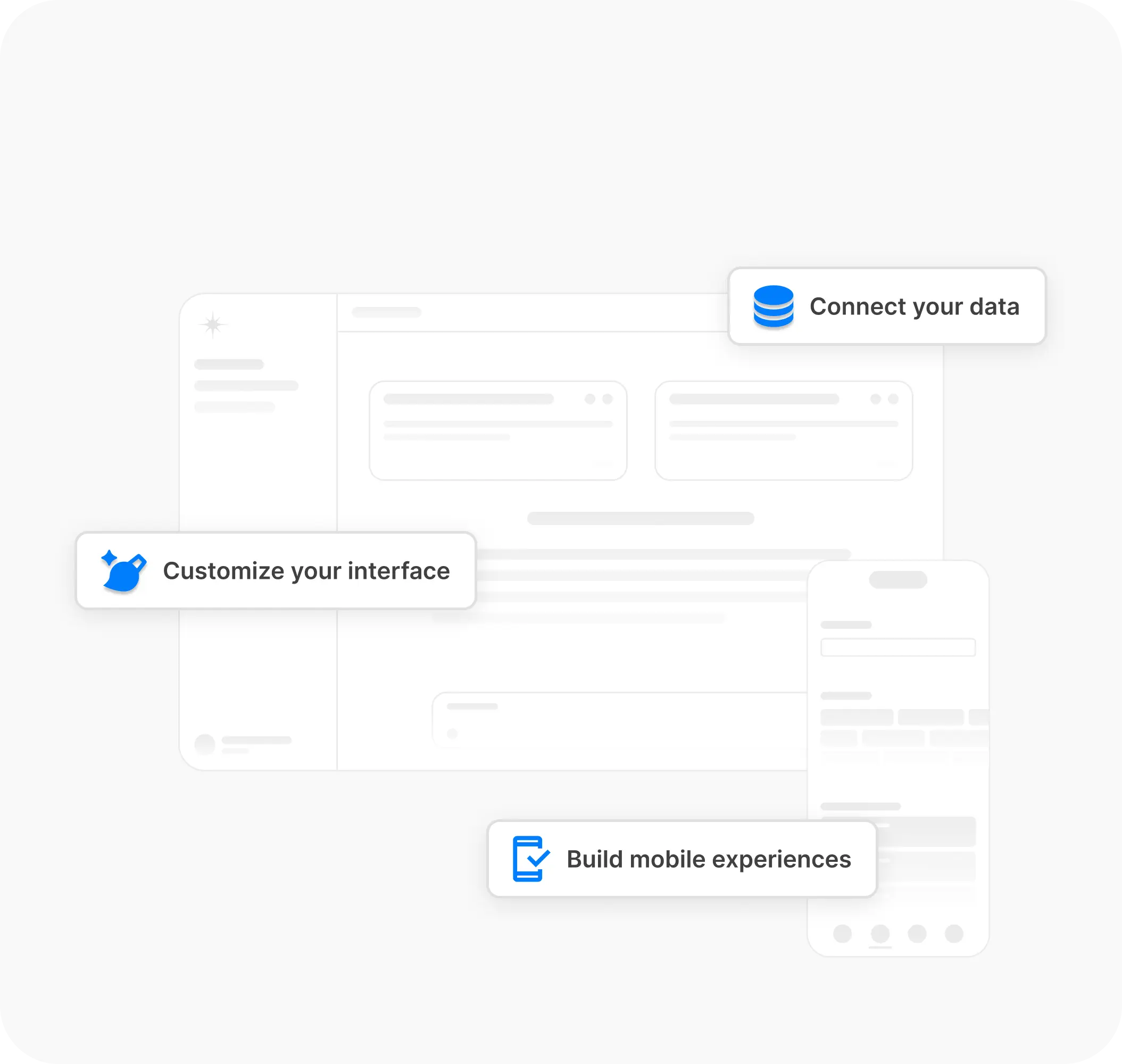 Build web and mobile interfaces, connect databases, define user roles, and give more capabilities to your project.